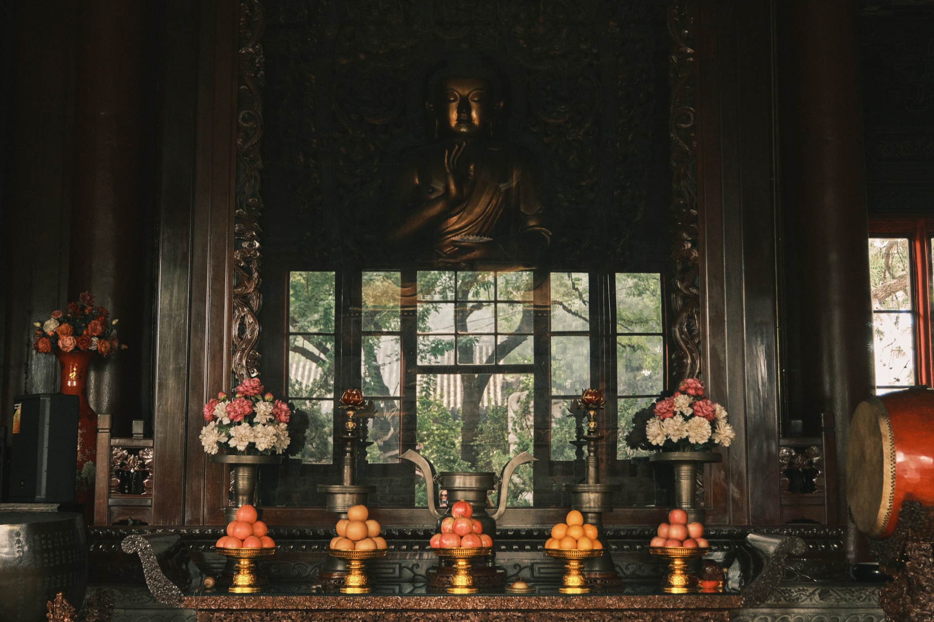 А за окном — вид на пагоду храма Мяоин.
