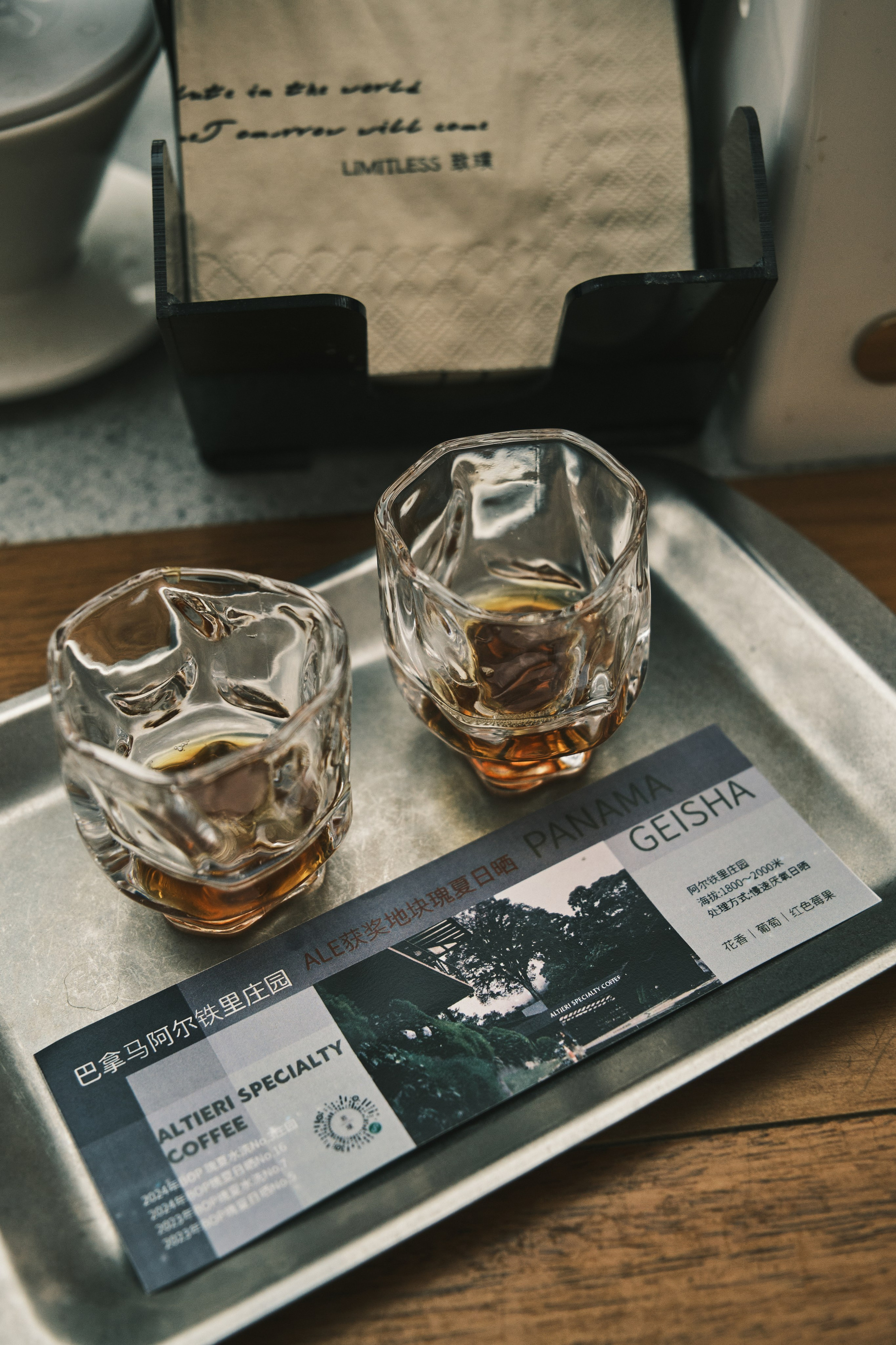 Первой была аукционная натурально обработанная Panama Geisha с фермы Altieri Specialty Coffee — элитный сорт арабики с ярким цветочным ароматом, ягодной кислотностью и цитрусовой свежестью. Один из самых дорогих и престижных сортов кофе в мире — часто используется для каппингов, дегустаций и чемпионатов.