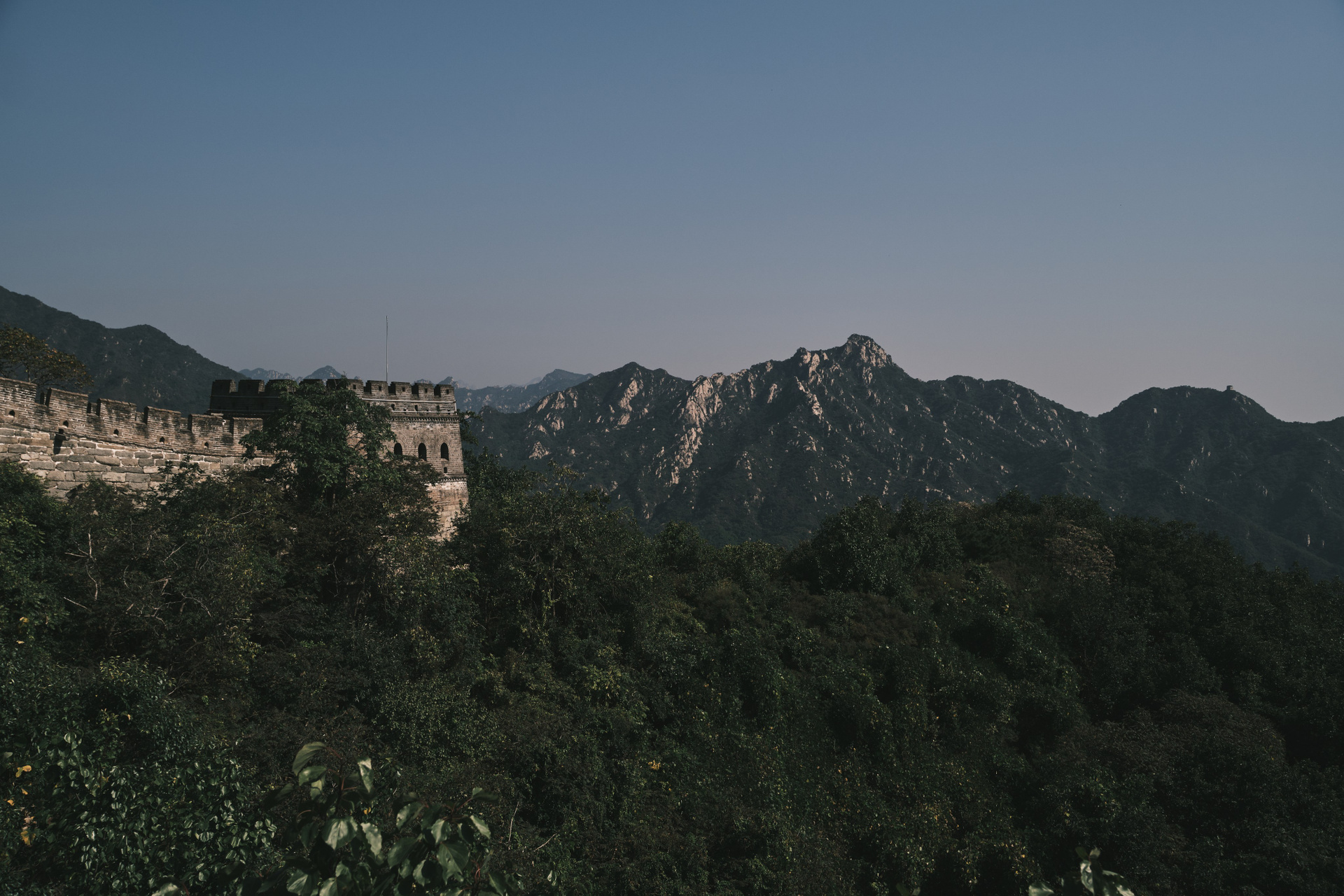 На стене было огромное количество людей, несмотря на то, что мы выбрали «менее туристический участок Мутяньюй». Сначала мы амбициозно решили, что пройдем сначала в одну сторону вверх по горам, а после в другую. Но несколько башен спустя, по пробкам из людей, где нам приходилось стоять минут по 10, чтобы просто пройти сквозь, мы решили быстро двинуться обратно к месту спуска, чтобы не опоздать к отбытию.