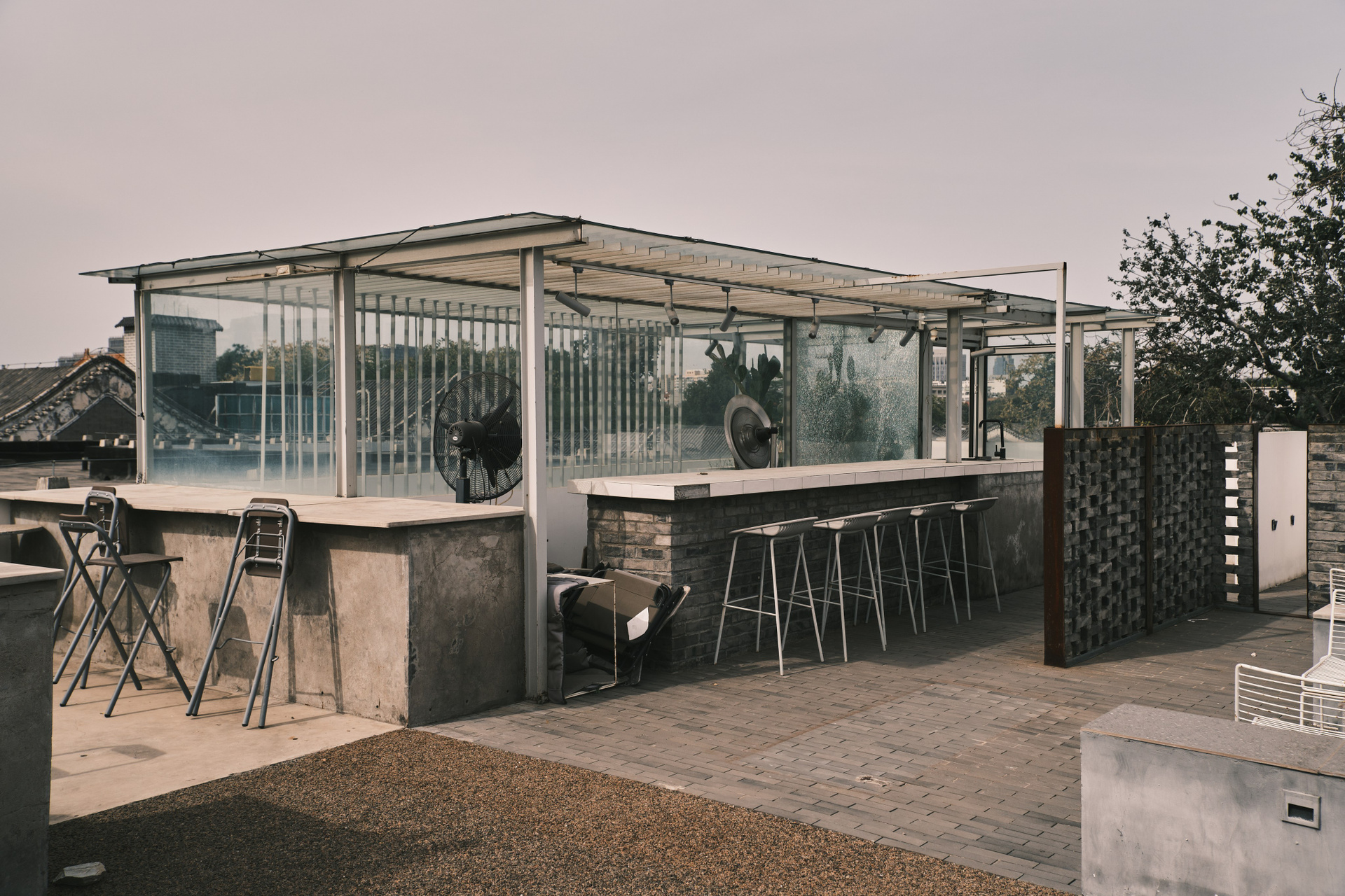 А ещё выше — крыша. Открытая терраса с баром видом на город. Но в тот день было так жарко, что она пустовала.